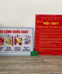 Một bộ bảng đi kèm khi lắp bình chữa cháy bao gồm nội quy chữa cháy và tiêu lệnh chữa cháy. Bảng nội quy ghi rõ nội dung về các quy định an toàn PCCC dành cho cá nhân và tổ chức tham gia công tác PCCC. Bảng tiêu lệnh là 4 bước điều lệnh cần làm khi phải đối phó với đám cháy.