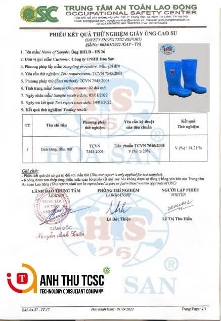 Đạt tiêu chuẩn kiểm nghiệm của trung tâm an toàn lao động